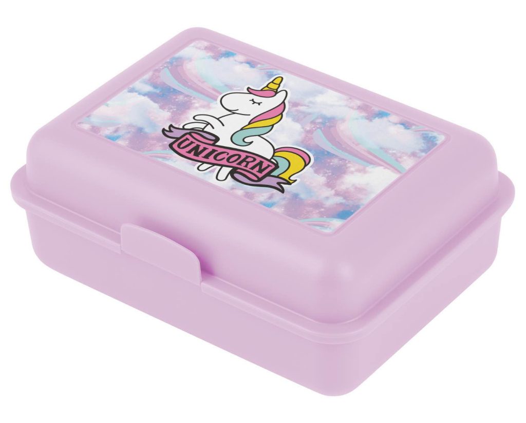Praktický růžový box na svačinku s motivem Duha.