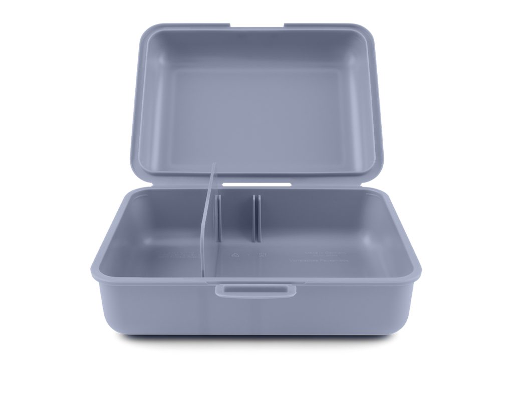 • Plastový box na svačinu v modré barvě.