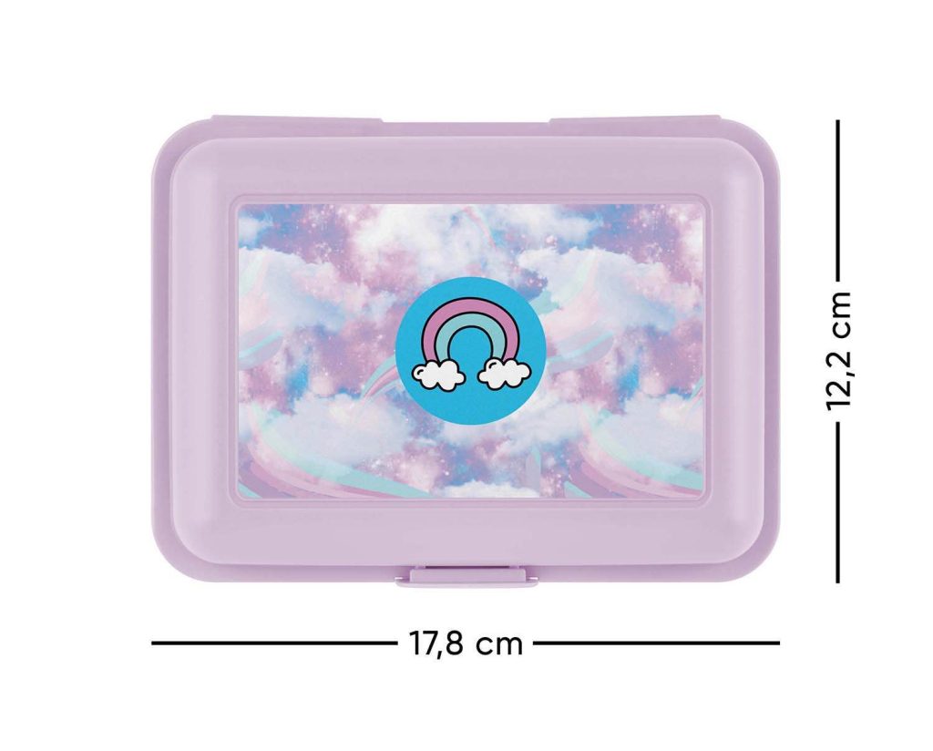Plastový box na svačinu ve fialové barvě s motivem Nebe.