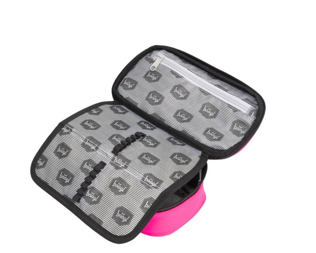 • Pevný penál na zip s dvojitou výklopnou chlopní