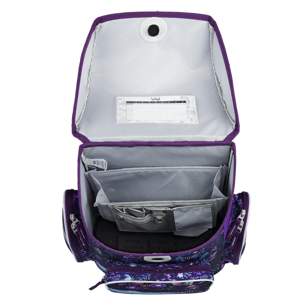 • Uvnitř aktovky je průhledná kapsa s rozvrhem a vnitřní organizér umožňující rovnoměrné rozložení hmotnosti.