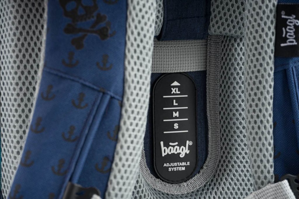 • Posuvný zádový systém BAAGL ADJUSTABLE SYSTEM umožňuje nastavení optimální polohy popruhů vzhledem k výšce dítěte.
