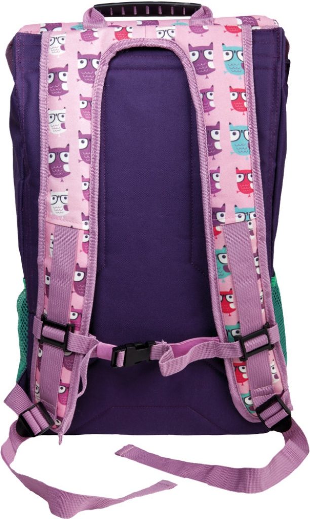 Jednokomorový školní batoh se sovami.