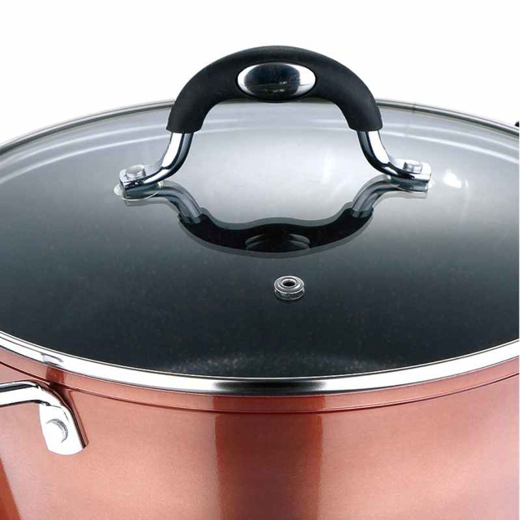 BERGNER Sada nádobí s nepřilnavým povrchem 5 ks Pandora BG-6235-CP • Výrobek z kovaného hliníku. Každý kus tohoto nádobí má strukturu vyrobenou z nejlepšího kovaného hliníku pro větší životnost a odolnost proti nárazům. • Hrnce pro indukční systém. Nádobí v sadě funguje efektivně s různými styly vaření. Jsou ideální pro použití v kuchyních s indukčními systémy. • Všestranná sada hrnců. Jsou to hrnce, které lze v kuchyni využít pro širokou škálu použití a snadno vařit, vařit, smažit a opékat jakoukoli přísadu.•Různé nádobí. Sada obsahuje pánev ideální pro smažení jakékoli suroviny bez použití velkého množství oleje a 2 pánve s poklicí pro bezpečné vaření.•Z kolekce Bergner Pandora. Kuchyňské baterie obsažené v této sadě se vyznačují kvalitou této řady výrobků, díky čemuž si jejich používání můžete užívat po mnoho let.Kvalitní sada pánve a kastrůlku s poklicí od značky Bergner Pandora. Je to velmi užitečná sada kusů do kuchyně. Obsahuje hrnce různých velikostí a pro různé použití v kuchyni. Sada navíc obsahuje pevnou a odolnou pánev s nepřilnavým povrchem. Jedná se o sérii kuchyňských doplňků, které usnadní různé úkoly při vytváření různých receptů. Můžete vařit, vařit, smažit nebo opékat různé přísady. Tato sada hrnců bude ideální pro usnadnění různých úkolů v kuchyni. Jsou to kusy vyrobené z produktů optimální kvality, aby si je užívali po mnoho let. Jsou to hrnce, které se snadno udržují a umývají. Dílky této sady nádobí mají složení, které je činí trvanlivými a odolnými. Struktura každého z herních prvků je vyrobena z kovaného hliníku, materiálu, který odolává nárazům a poškrábání, aniž by byla ovlivněna jeho struktura. Nádobí odolává nejvyšším teplotám, takže jeho estetika a funkčnost nebude ovlivněna teplem. Vnitřek každého kusu hry má mramorový povlak, jehož kvalita zabraňuje vzniku škrábanců na jeho povrchu. Navíc mají nepřilnavou vrstvu, která zabraňuje přichycení jídla k povrchu hrnců. Jeho měděný povrch poskytuje těmto hrncům elegantní a jednoduchý design, takže se přizpůsobí prostorům různých kuchyňských stylů. Sada obsahuje 5 kusů pro více použití. Součástí je pánev o rozměrech 24 x 4,7 centimetru, ideální pro smažení a opékání různých surovin bez použití velkého množství oleje. 2 hrnce se skleněnými poklicemi různých velikostí, vhodné pro vaření polévek a dalších receptů uvnitř bezpečným a pohodlným způsobem. Jsou to ideální kuchyňské baterie pro použití doma nebo v profesionálních restauracích. S použitím těchto kousků si budou moci nadšenci do jídla vychutnat jedinečný zážitek při vytváření svých oblíbených receptů.