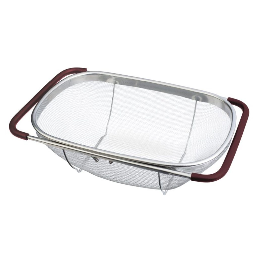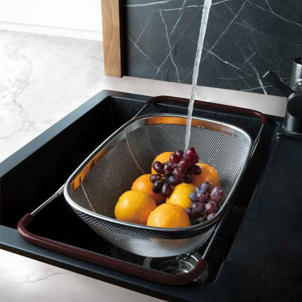 Tento flexibilní síťovaný cedník z vysoce kvalitní nerezové oceli 18/10 je ideálním pomocníkem pro každodenní práci v kuchyni. Díky nastavitelným rukojetím v matné bordó barvě jej snadno umístíte na různé typy dřezů, což zajišťuje maximální pohodlí a praktičnost při mytí ovoce, zeleniny nebo cezení těstovin.