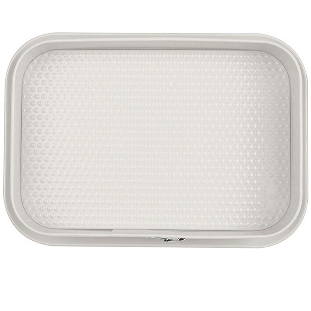 Tato rozkládací forma na pečení je vyrobena z uhlíkové oceli s nepřilnavou vrstvou TitanPro, která zajišťuje vysokou kvalitu a odolnost. Nepřilnavý povrch je vhodný pro pečení s minimem tuku. Forma má oddělitelný dno, což usnadňuje vyjmutí pečeného pokrmu. Velikost formy je 39x27x7,5 cm a její matná krémová barva dodává elegantní vzhled, který se hodí do každé kuchyně.