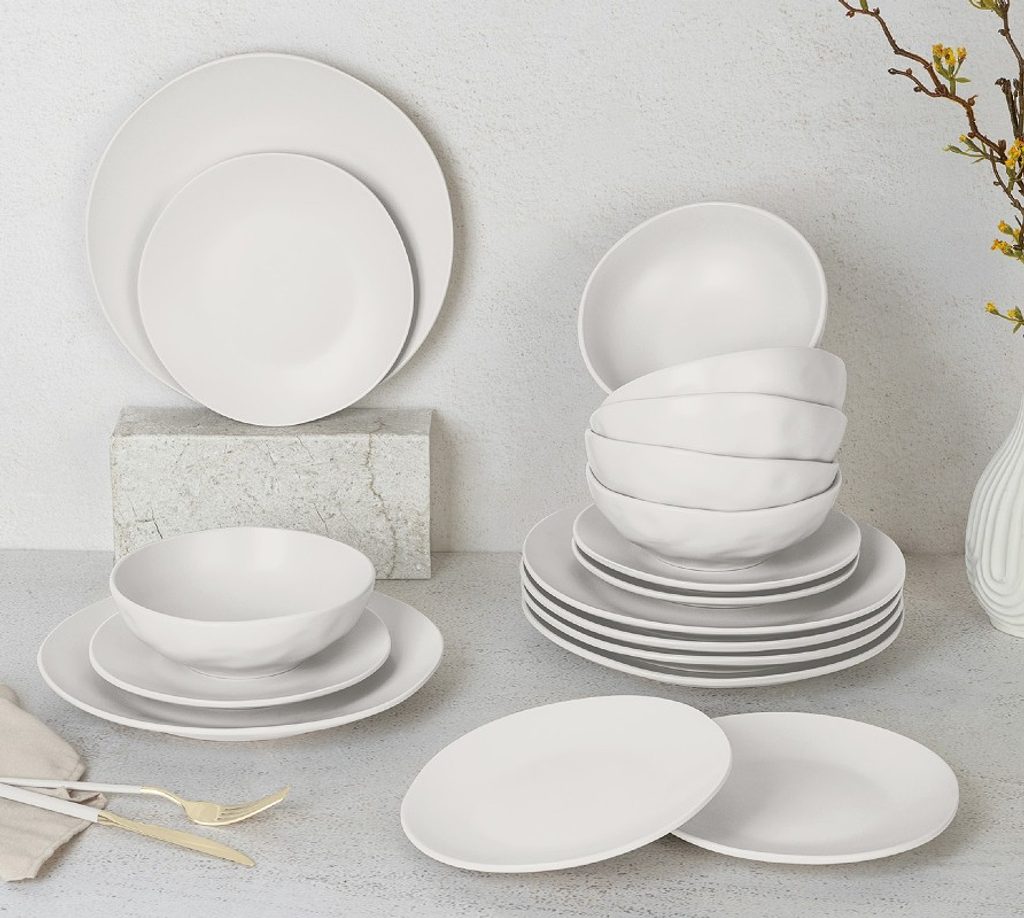 Jemná matná krémová barva této sady nádobí přináší teplý, příjemný tón na váš stůl, takže je ideální pro jakékoli jídlo – od neformálních snídaní po elegantní večeře. Tento všestranný odstín slouží jako krásné pozadí pro vaše kulinářské výtvory a umožňuje zářivým barvám vašeho jídla zářit.