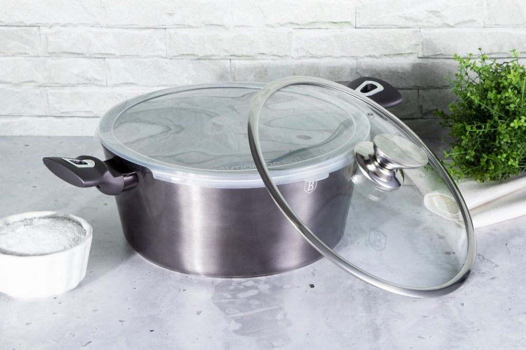 BERLINGERHAUS Kastrol s poklicí s mramorovým povrchem 28 cm Carbon PRO Line BH-6894 Velký kastrol s mramorovým povrchem a poklicí v atraktivním designu. Součástí kastrolu je také přesně padnoucí plastové víko, které vám usnadní skladování uvařeného jídla třeba přímo v lednici.