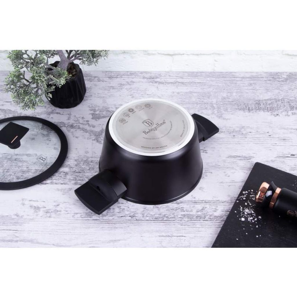 BERLINGERHAUS Kastrol s poklicí s titanovým povrchem 20 cm Monaco Collection BH-7086 Univerzální kastrol s titanovým povrchem v šedém designu Monaco Collection. Moderní minimalistický design kastrolu vás jistě zaujme hned na první pohled. Matný černý povrch kastrolu je navíc velmi praktický při dlouhodobém používání. Vnitřní vrstva je potažena 3vrstvým titanovým povrchem, který je charakteristický svou dokonalou nepřilnavostí. Připravované pokrmy se tak nepřipalují a díky tomu se kastrol velmi snadno čistí. Zároveň je vhodný pro zdravé vaření s minimem tuku nebo oleje, v závislosti na použitých surovinách klidně i bez jedinné kapky tuku. Titanový povrch, stejně jako ostatní použité materiály, neobsahují žádné škodlivé látky, vaření je tak zcela zdravé a hygienické. Zesílené Turbo indukční dno z nerezové oceli je kompatibilní se všemi druhy varných desek a spolehlivě funguje také na indukci. Jistě oceníte tepelně izolovanou rukojeť, která se při vaření nezahřívá a zůstává stále chladná. Kastrol Aspen je vhodný pro každodenní vaření, dušení i smažení, perfektně bude vypadat i při servírování hotových jídel přímo na váš stůl.