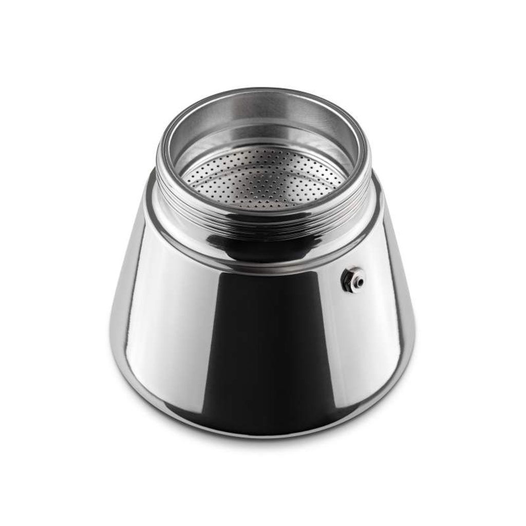Našroubuje se horní nádoba konvice, která je na její spodní straně také opatřena sítkem, ale ještě jemnějším.
