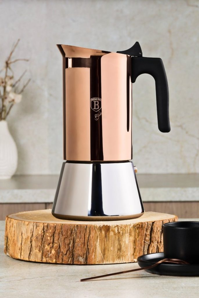 BERLINGERHAUS Konvice na espresso 9 šálků Rosegold Metallic Line BH-8550 - Tradiční moka konvička vyrobená z nerezové oceli vhodná pro přípravu až 9 šálků kávy