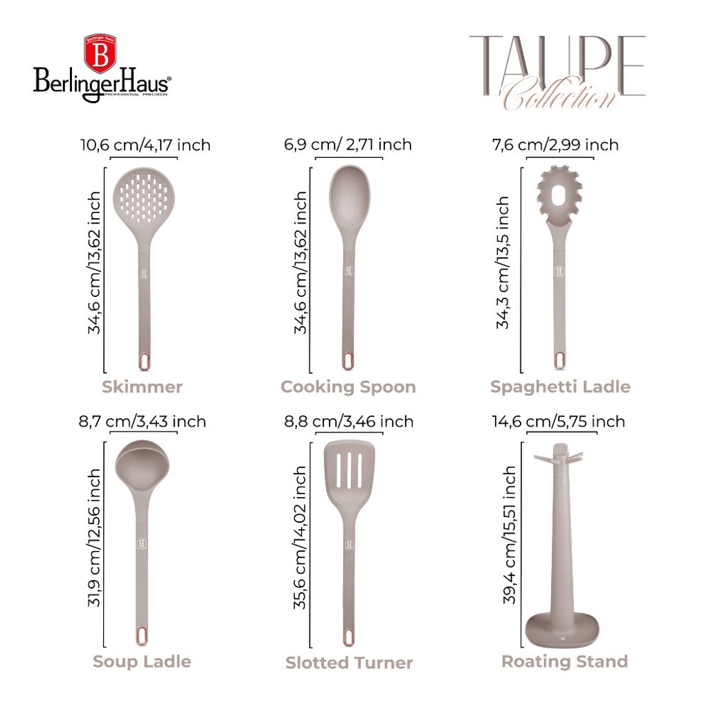Sada kuchyňského náčiní Berlingerhaus BH-8618 je nejen funkční, ale také přidává do vaší kuchyně nádech elegance. Ať už vaříte rodinné jídlo nebo hostíte přátele, tyto nástroje vypadají skvěle a fungují ještě lépe.