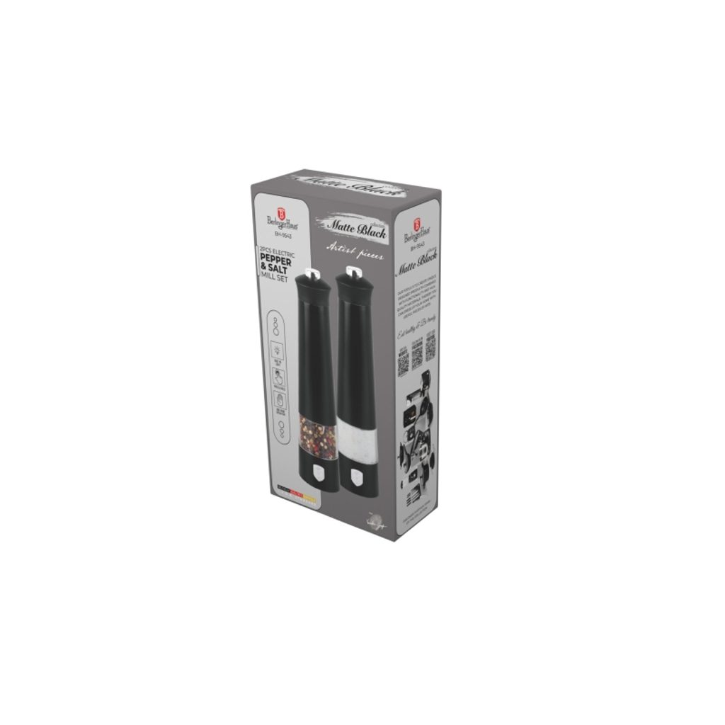 BERLINGERHAUS Mlýnek na pepř a sůl elektrický sada 2 ks Matte Black Collection BH-9543
