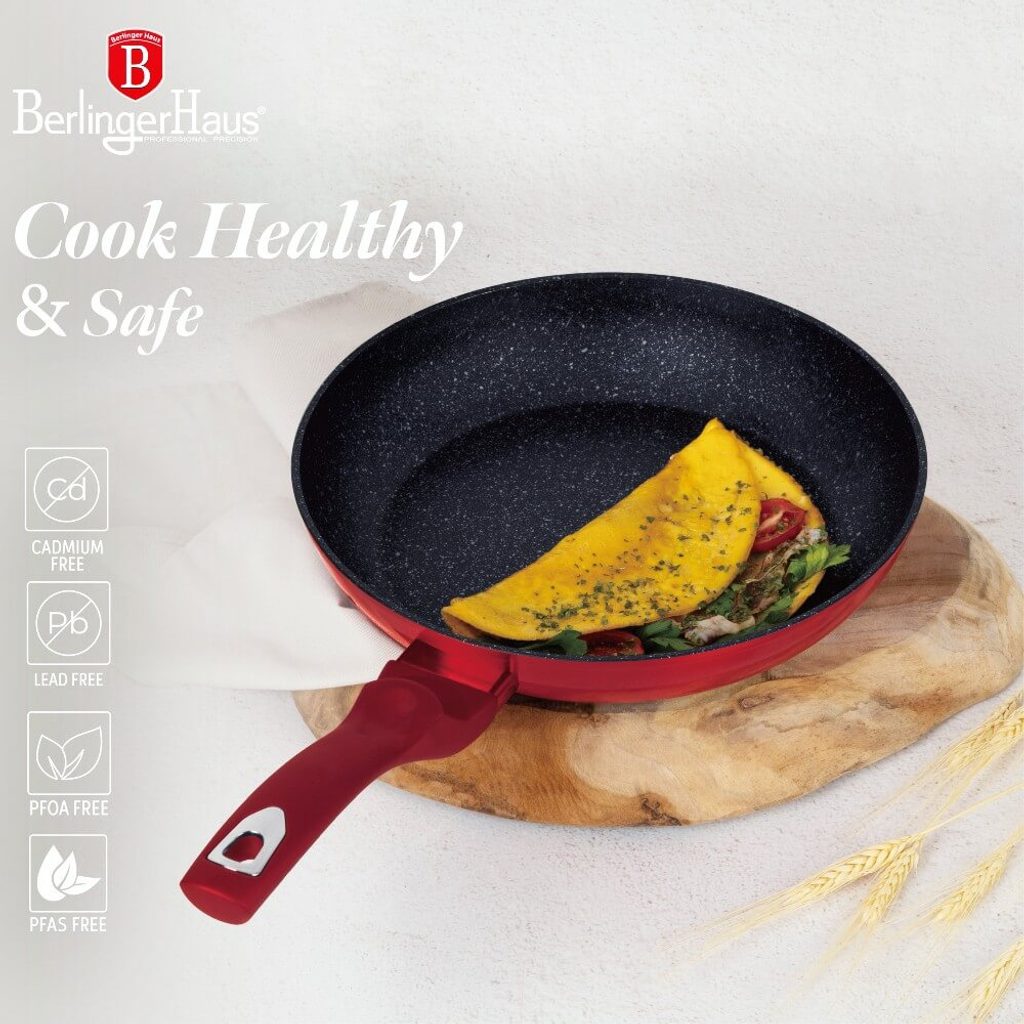 BERLINGERHAUS Pánev s mramorovým povrchem 30 cm Burgundy Metallic Line BH-1254 - univerzální velká pánev s mramorovým povrchem a ergonomickou rukojetí v atraktivním designu