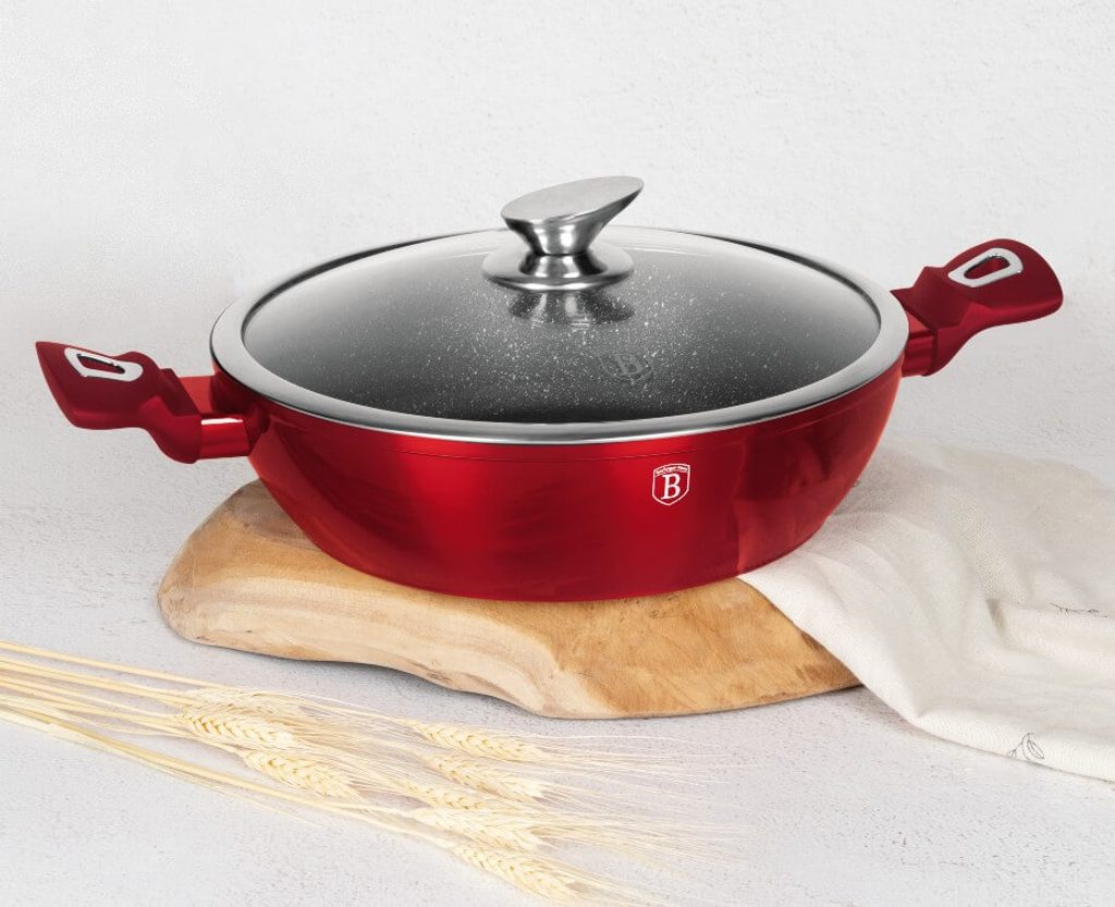 BERLINGERHAUS Pánev Wok s poklicí 30 cm Burgundy Metallic Line BH-7110