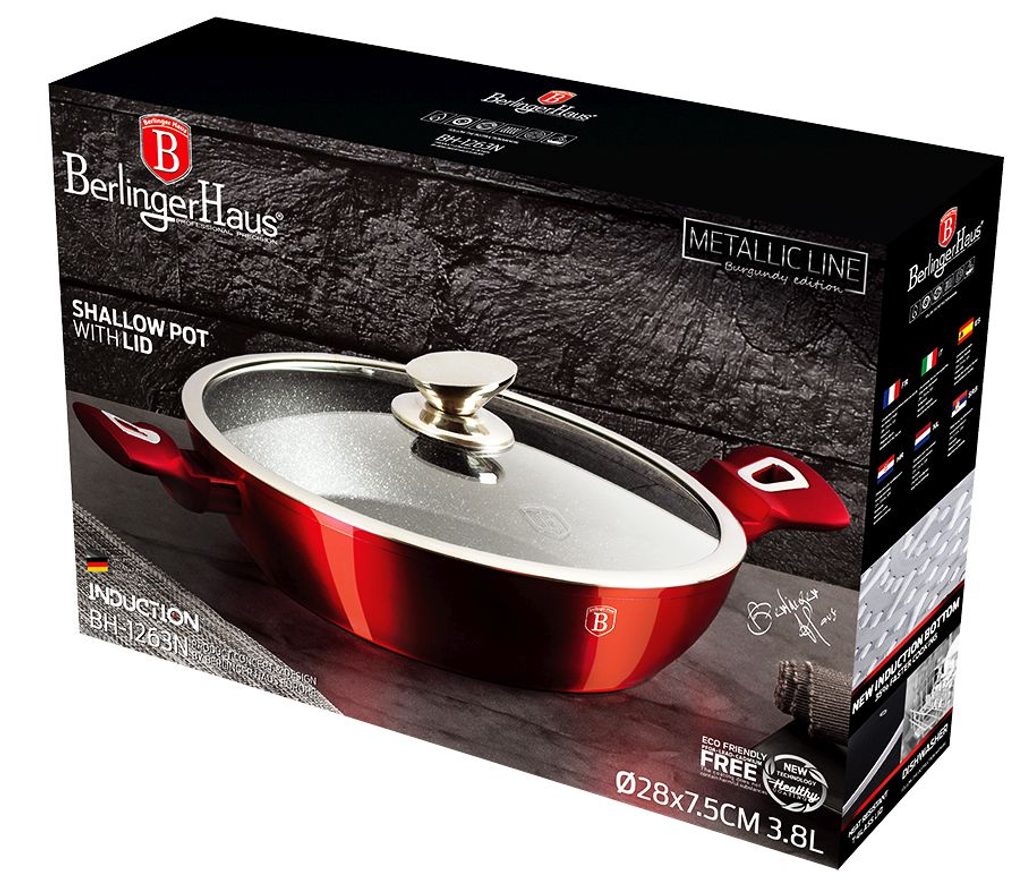BERLINGERHAUS Pekáč kulatý s mramorovým povrchem a poklicí 28 cm Burgundy Metallic Line BH-1263