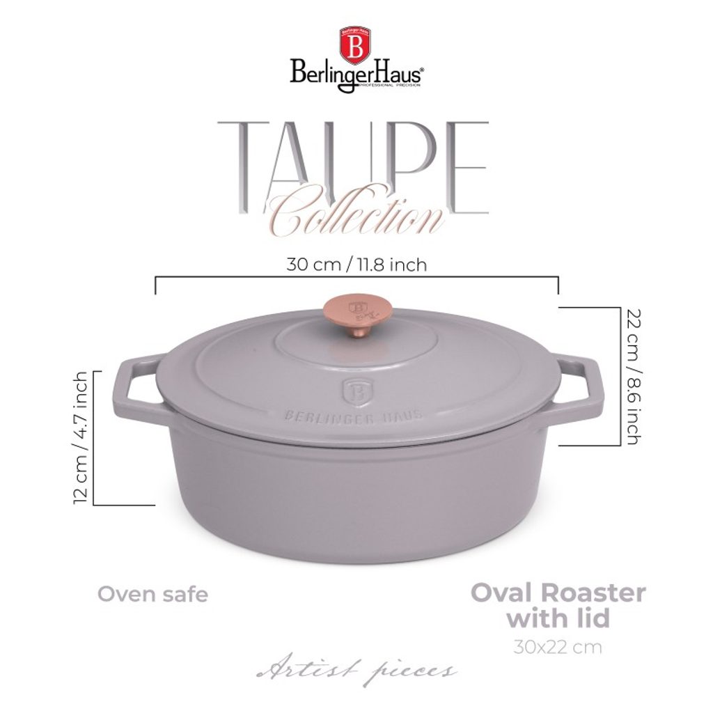 Přineste do své kuchyně eleganci a funkčnost s naším oválným litinovým pekáčem z kolekce Taupe. Tento pekáč je navržen tak, aby poskytoval vynikající výkon a dlouhou životnost. Taupe barva dodává pekáči moderní a stylový vzhled, který se hodí do každé kuchyně.