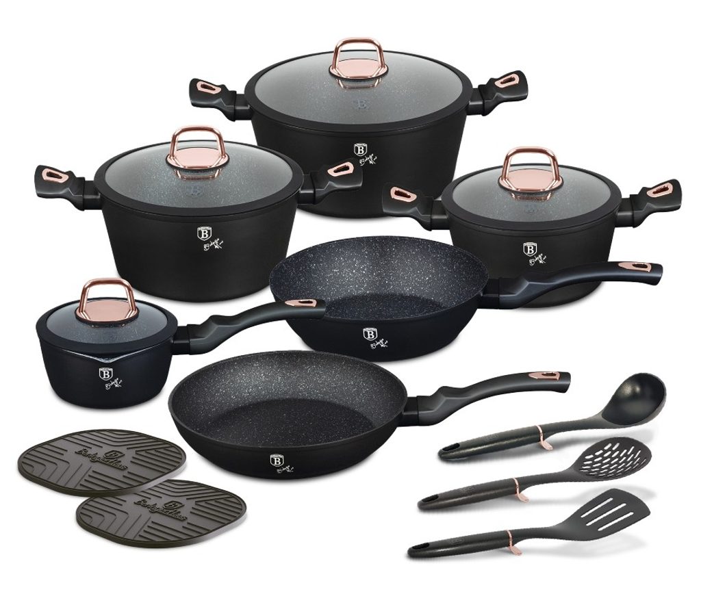 BERLINGERHAUS Sada nádobí s mramorovým povrchem 15 ks Black rose Collection BH-8234