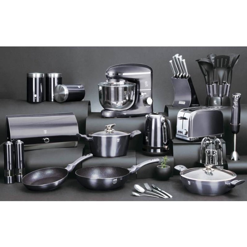 Hledáte vhodnou sadu nádobí do vaší kuchyně? Sadou získáte všechny potřebné nádoby na vaření, ať už budete vařit pro sebe nebo pro více osob. Velkou výhodou je, že můžete objednat najednou více nádobí od ověřeného výrobce BERLINGERHAUS. Sadu nádobí sjednocuje jednotný design, navíc černá barva celé sady je univerzální a vyjímat se bude v každé kuchyni.