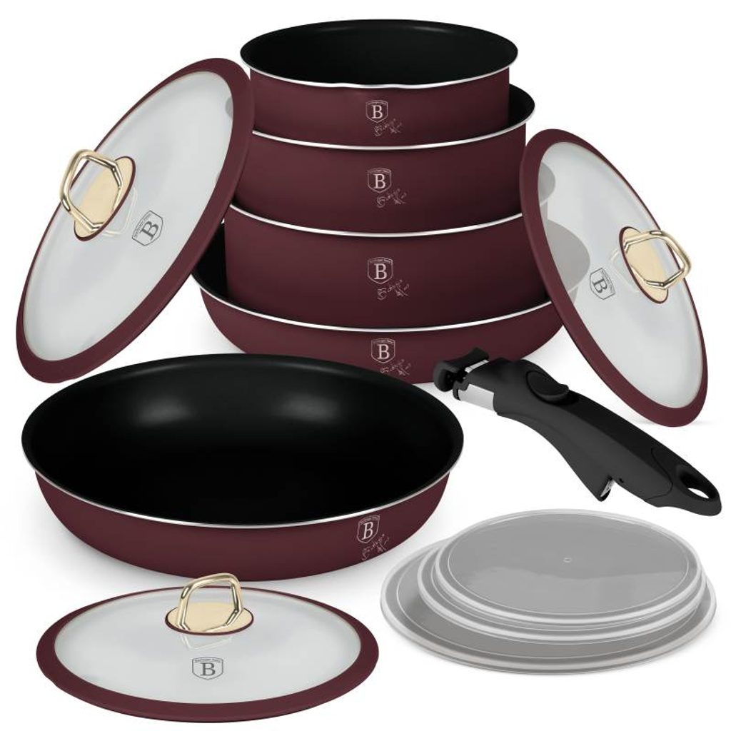 Sada nádobí s odnímatelnou rukojetí 12 ks Burgundy Metallic Line