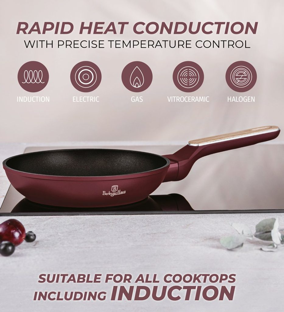 Vstupte do světa profesionálního vaření s touto exkluzivní sadou nádobí, která kombinuje lehkost kovaného hliníku s prémiovým nepřilnavým povrchem TitanPro. Každý kus je navržen tak, aby vám usnadnil přípravu pokrmů a zároveň přinesl do vaší kuchyně styl a funkčnost v minimalistickém designu v matné bordó a dřevěných detailech.