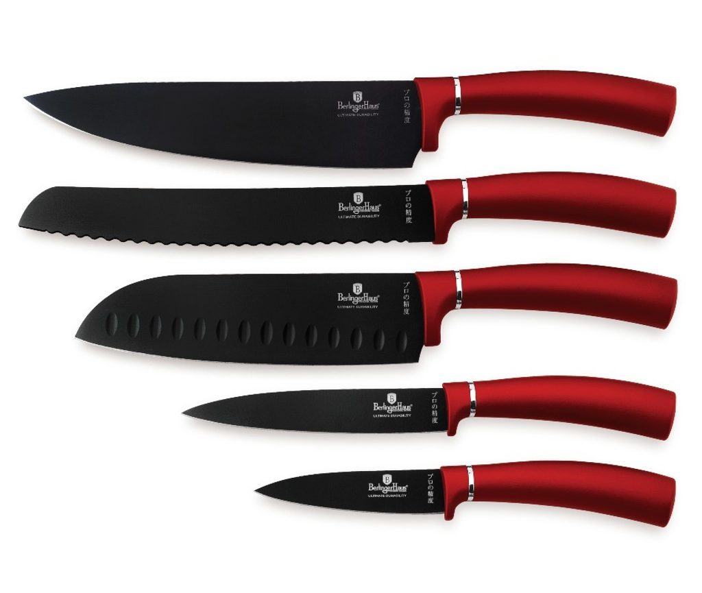 BERLINGERHAUS Sada nožů s magnetickým držákem 6 ks Burgundy Metallic Line BH-2886 - Materiál: nerezová ocel s černou nepřilnavou vrstvou