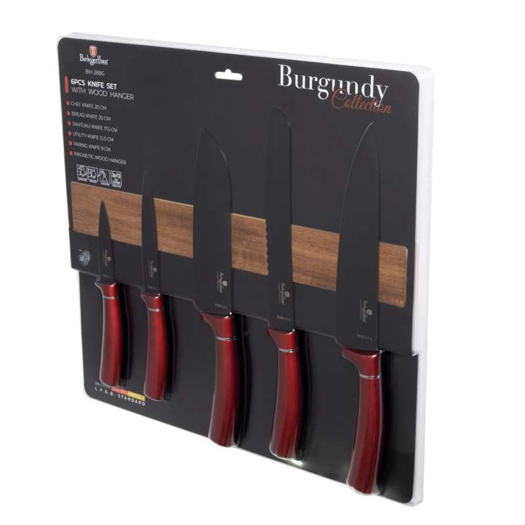 BERLINGERHAUS Sada nožů s magnetickým držákem 6 ks Burgundy Metallic Line BH-2886