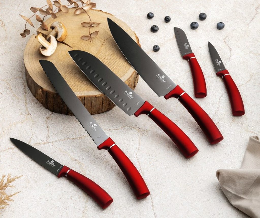 BERLINGERHAUS Sada nožů s nepřilnavým povrchem 4 ks Burgundy Metallic Line BH-2887 - Materiál: nerezová ocel s černou nepřilnavou vrstvou