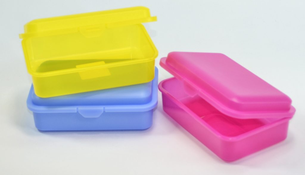Plastový box na svačinu - praktická věc k uložení a přenášení svačinky, která nesmí chybět v práci, ve škole nebo při cestování. Rozměry: 16cm x 11cm x 5,5cm.