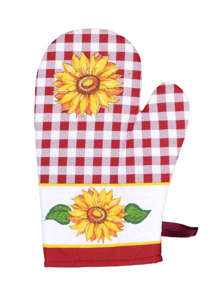 chňapka 28x18cm, SLUNEČNICE červená, BA, magn., poutko, podš.