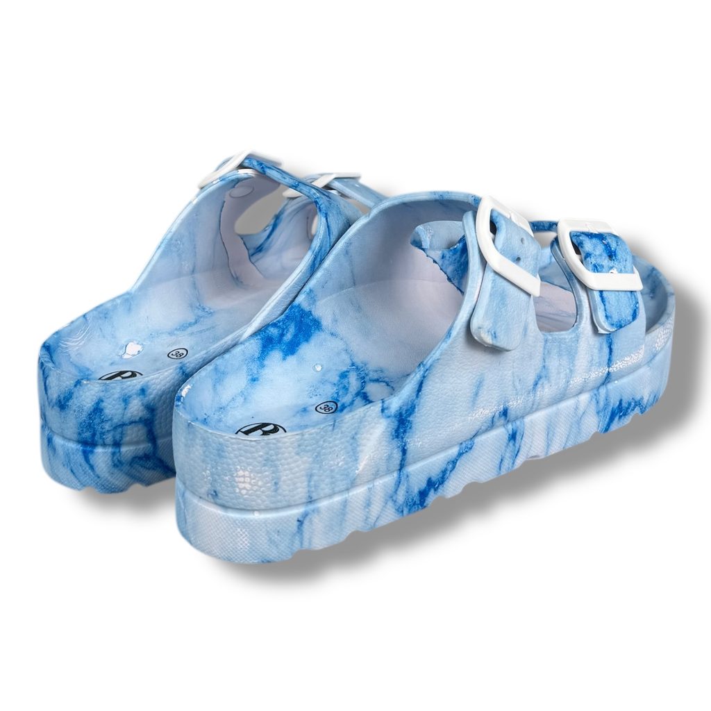Dámské pantofle na platformě Best Feet - bílo-modré