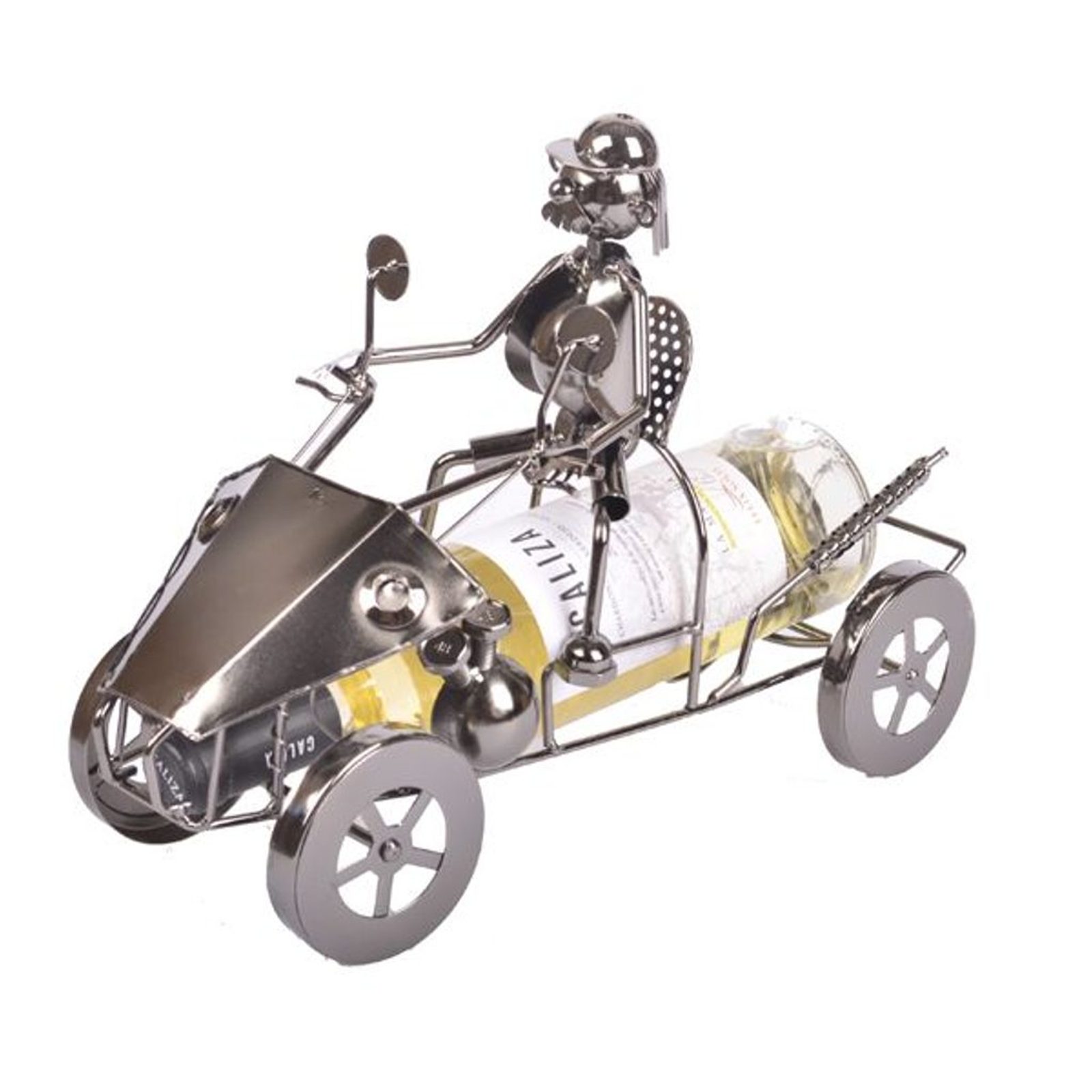 Dárkový stojan na víno kovový v provedení čtyřkolky.