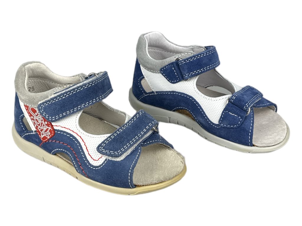 Kompletně celokožená dětská obuv s podporou podélné klenby a tvarování v patě.