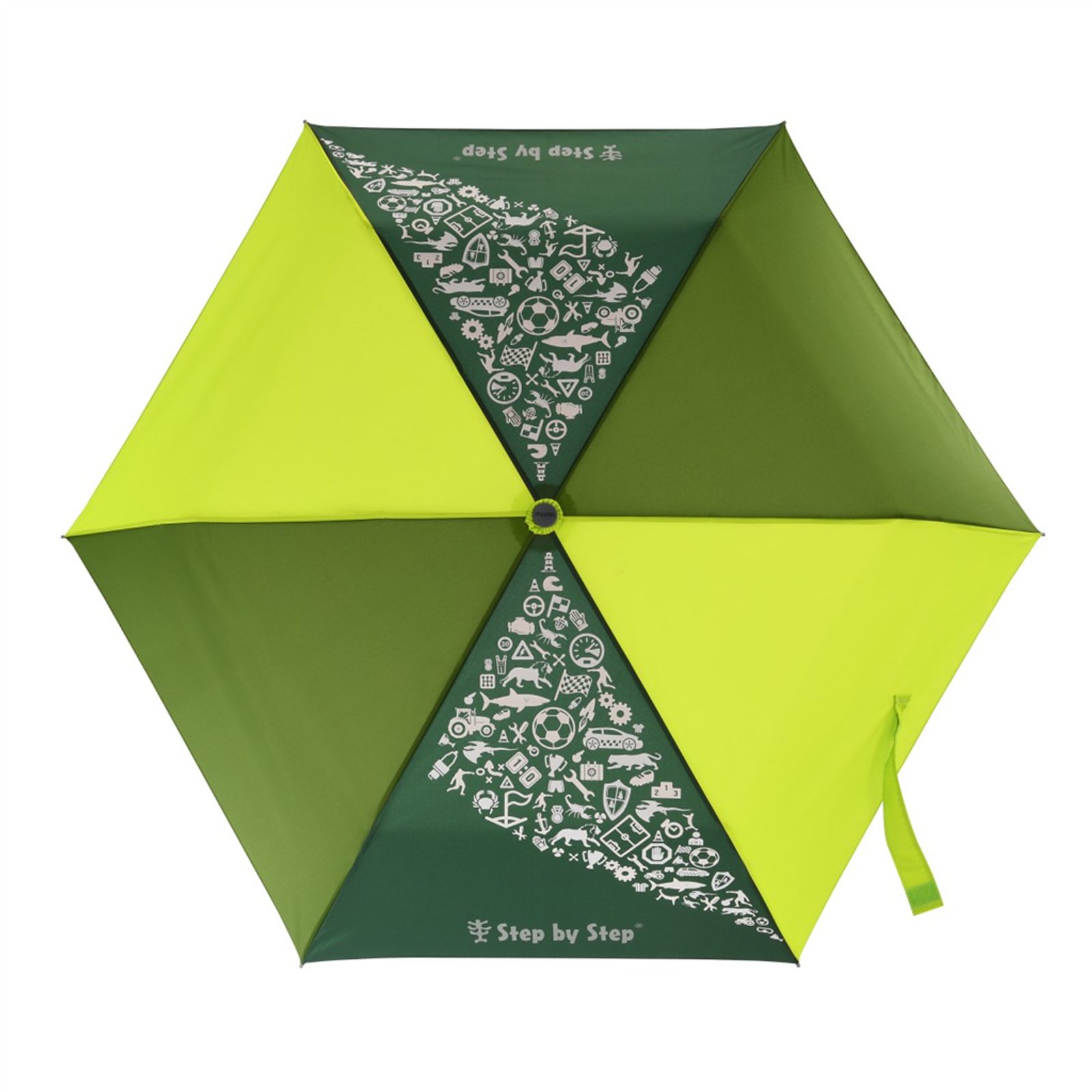 - reflexní nápis Step by Step na střeše deštníku pro větší bezpečnost
