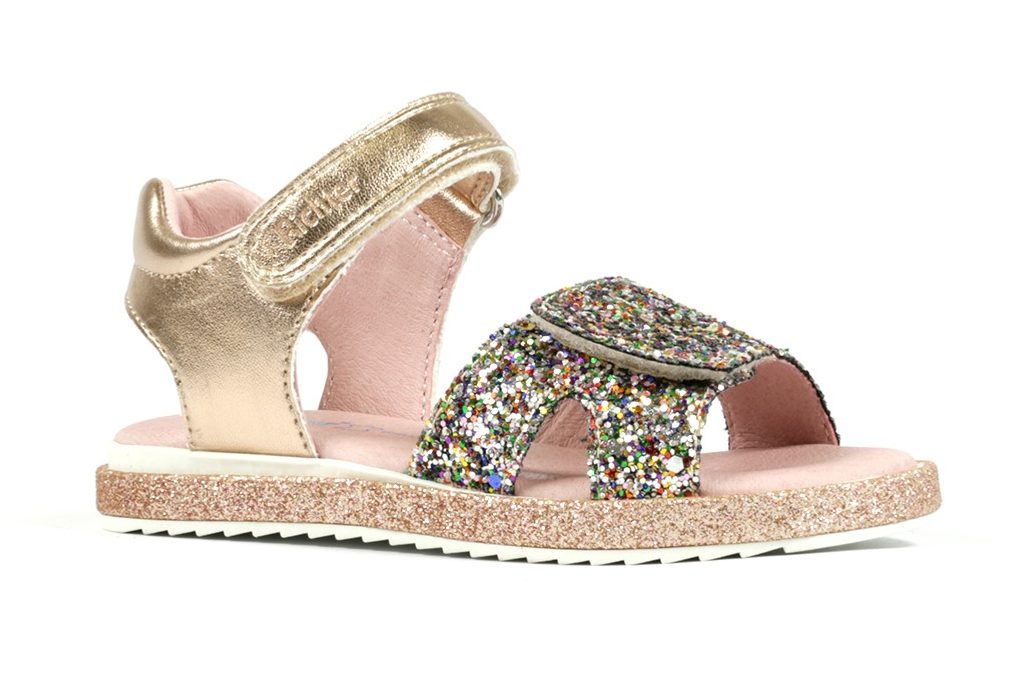 Dívčí kožené sandálky s flitrem, vhodné na různé záležitosti, kde Vaše princezna bude vynikat v krásných sandálcích.