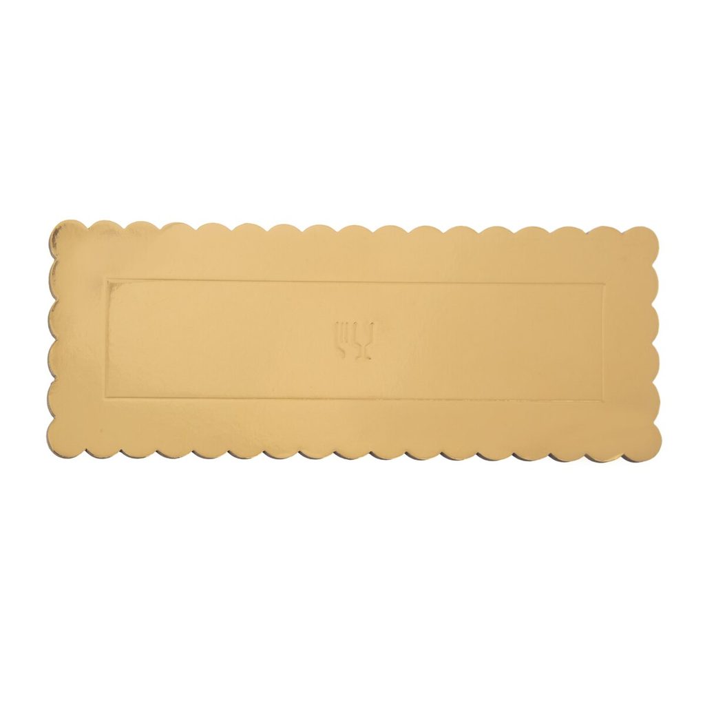 Obdélníková oboustranná podložka je vhodná k servírování a přenášení rolád, štrůdlů (slaných i sladkých), zákusků, kousků dortu, cukroví, chlebíčků a dalších pokrmů. Je možné použít i k vystavení zákusků do vitrín. Ozdobný vlnitý okraj. Materiál: papír, fólie. Rozměry: 32x12x0,3 cm.