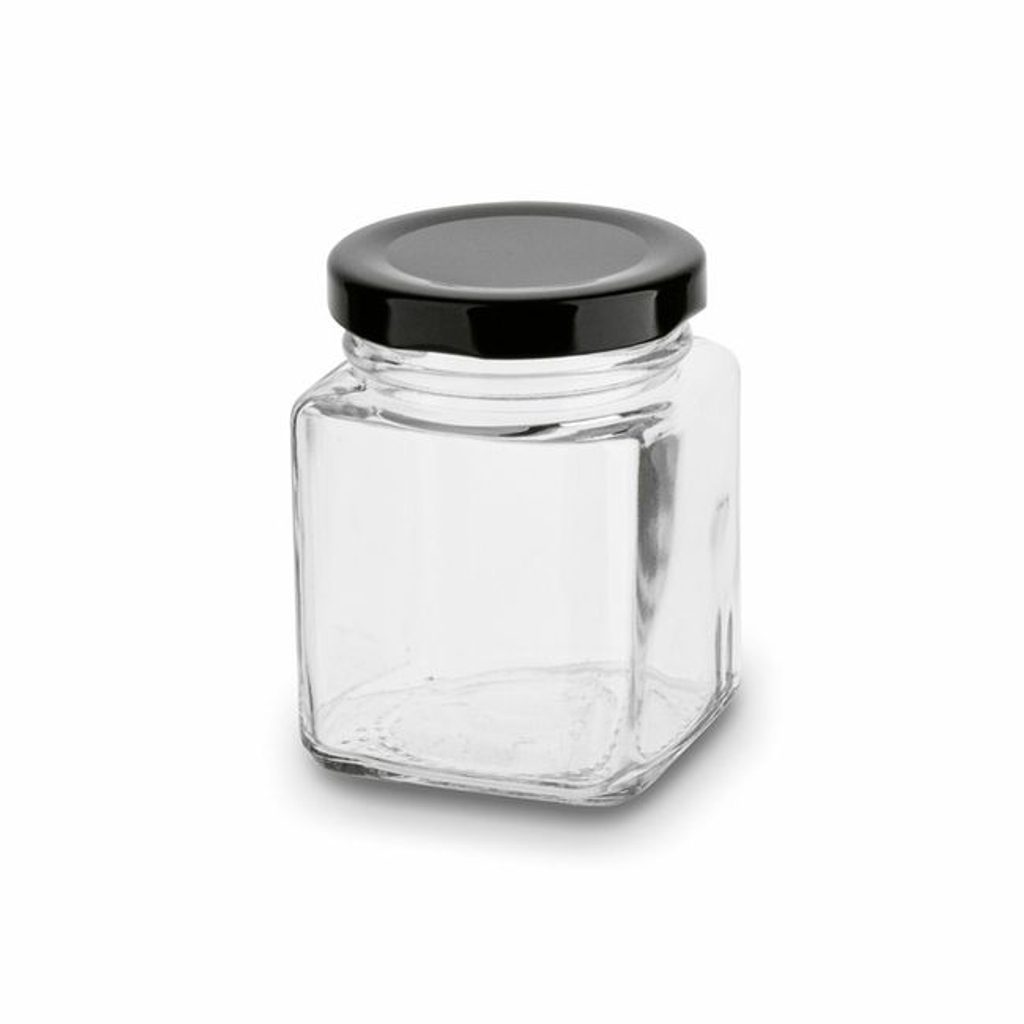 dóza 0,15l BELO čtverc.-sklo, víčko TO48 černé, kov