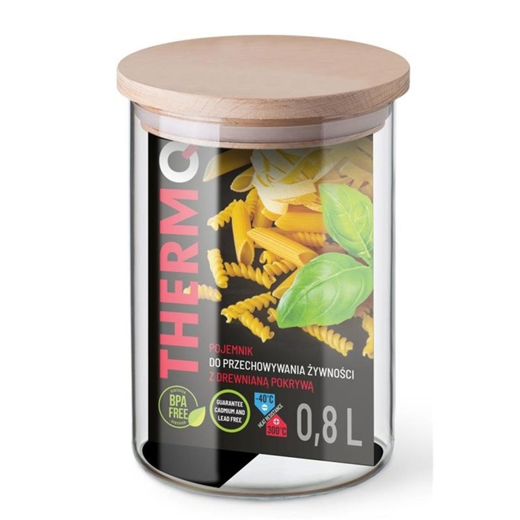 dóza 0,80l, d9,6x14,5cm, THERMO, dř.víčko, var.sklo