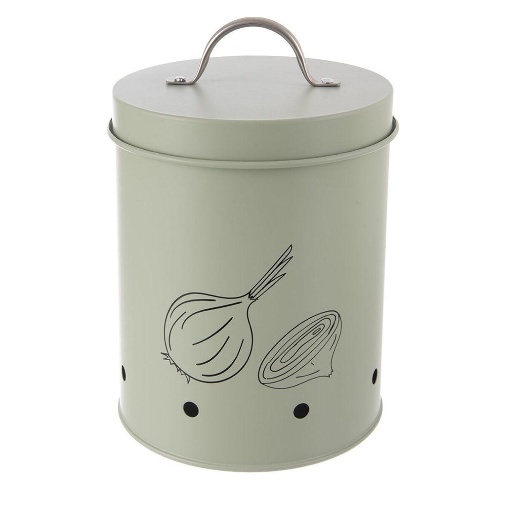 Dóza s víčkem na uložení cibule je vhodná pro domácnosti bez spíže či sklepa. Díky stylovému designu může být cibule skladována přímo v kuchyni na viditelném místě a vytvoří pěknou dekoraci. Zároveň plní praktický účel uchování potravin. Ventilační otvory zajišťují cirkulaci vzduchu, zamezují hromadění vlhkosti a tepla a tím zabraňují klíčení, vzniku plísní a zajišťují delší trvanlivost. Materiál: plech. Rozměry: pr. 13 cm, v. 20 cm. Není vhodná do myčky, dózu lze rychle a jednoduše vyčistit vlhkým hadříkem.