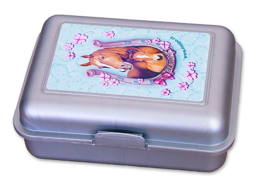 Box na potraviny se zaklapávacím uzávěrem a s přepážkou uvnitř je vyroben ze zdravotně nezávadného materiálu a zaručuje bezpečné a hygienické uložení svačinky bez rizika potřísnění či jiného znehodnocení ostatní výbavy školáka.