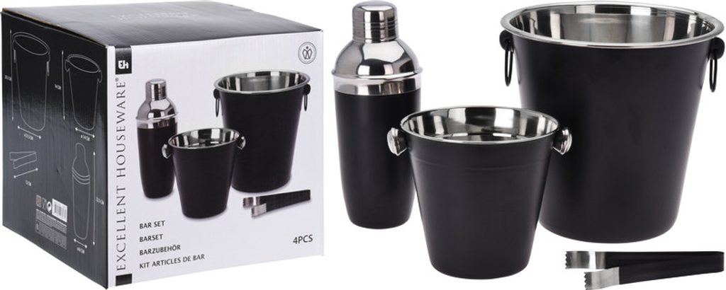 EXCELLENT HOUSEWARE Barmanská sada 4 ks nerez černá KO-A12405600