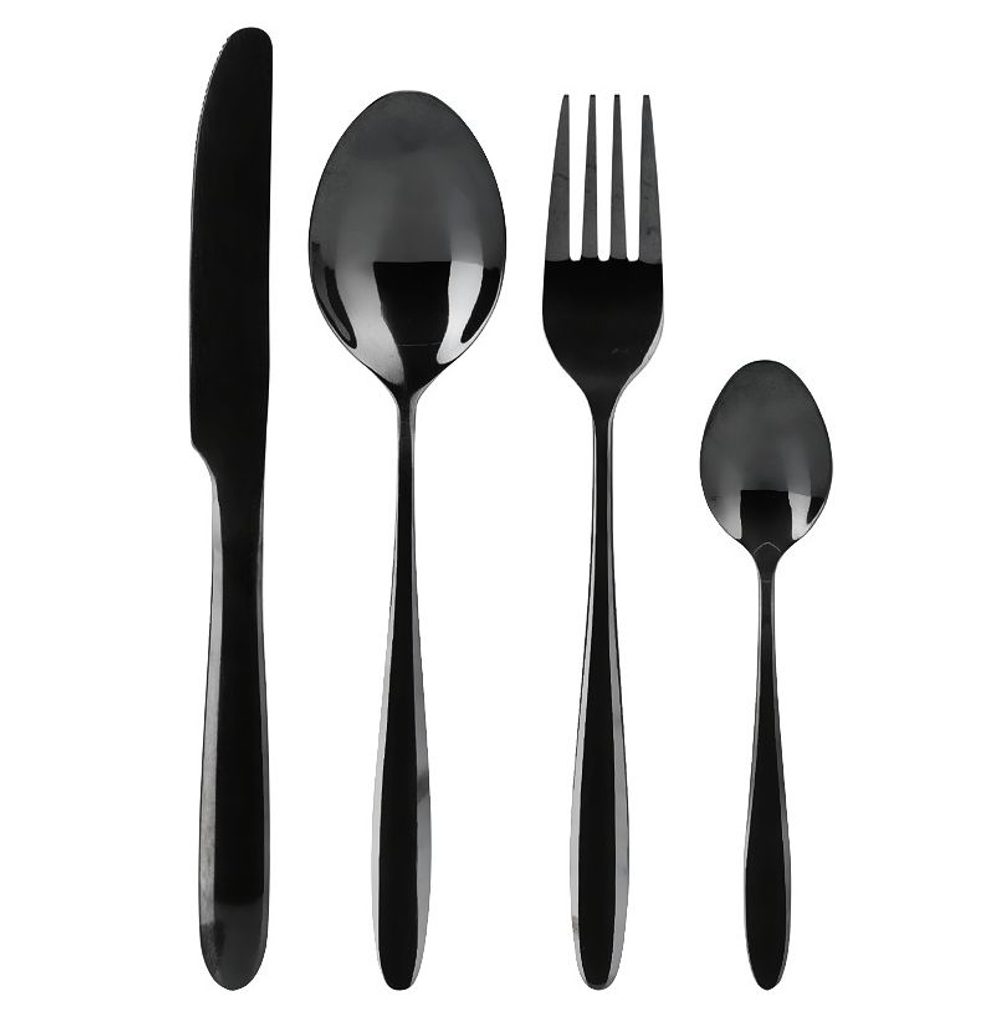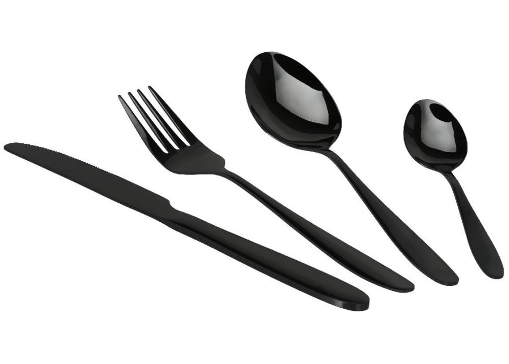 Luxusní sada příborů z nerezové oceli s elegantním černým PVD povlakem a zrcadlově leštěným povrchem. Ideální pro každodenní použití i slavnostní příležitosti.
