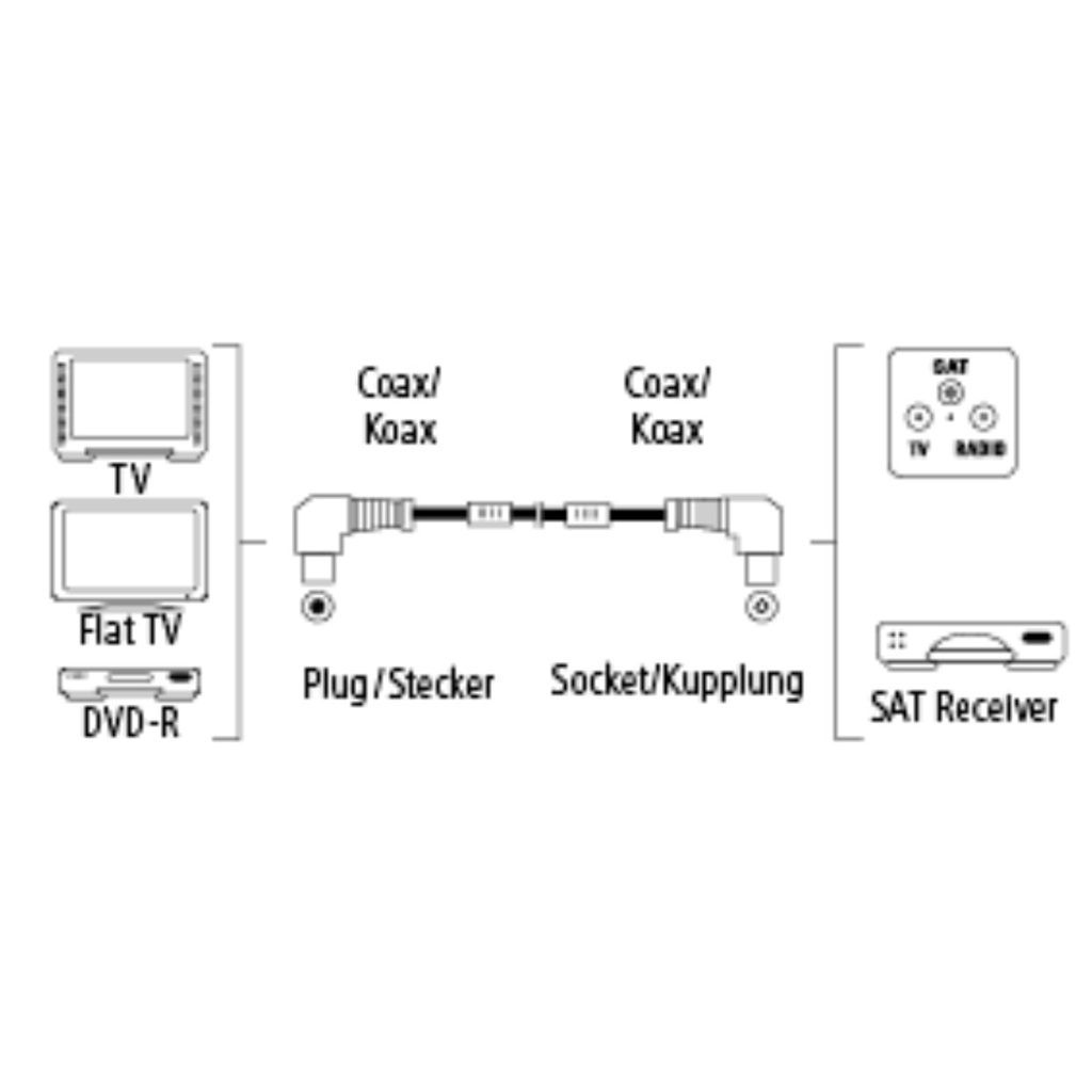 Hama anténny kábel vidlica - zásuvka, kolmé konektory, 95 dB, 3*, 5 m