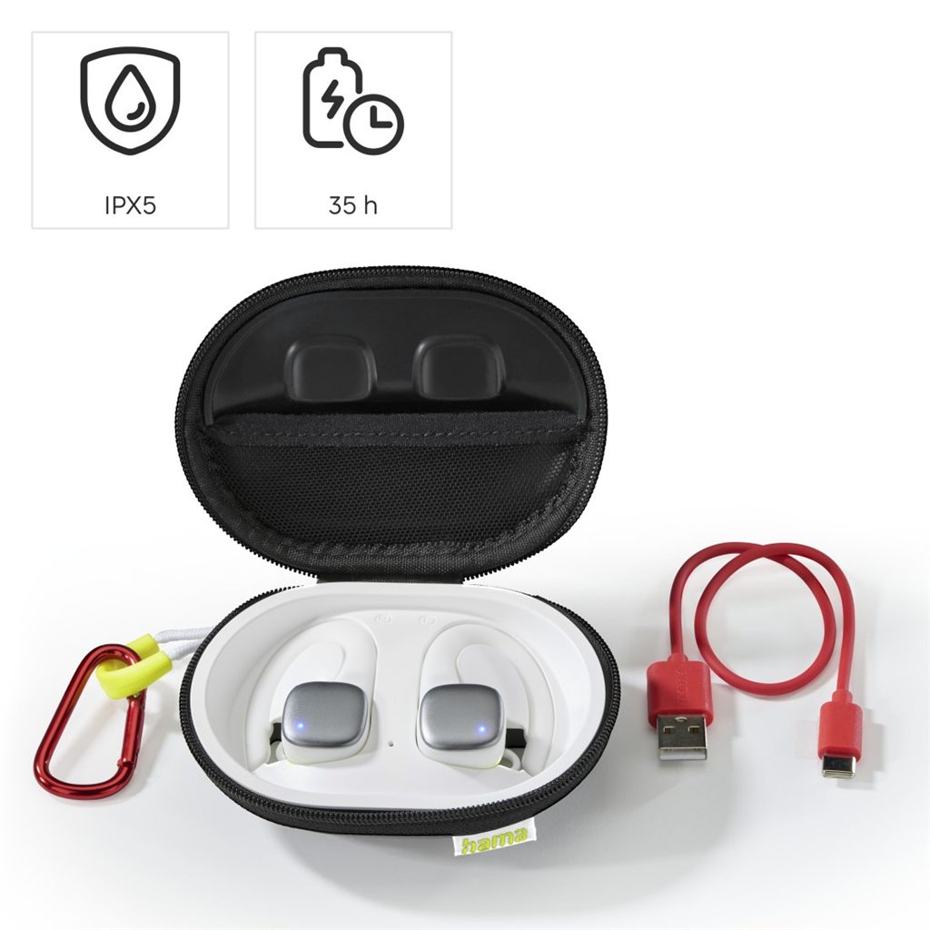 Hama Bluetooth sluchátka Spirit Athletics s klipem, pecky, nabíjecí pouzdro, bílá