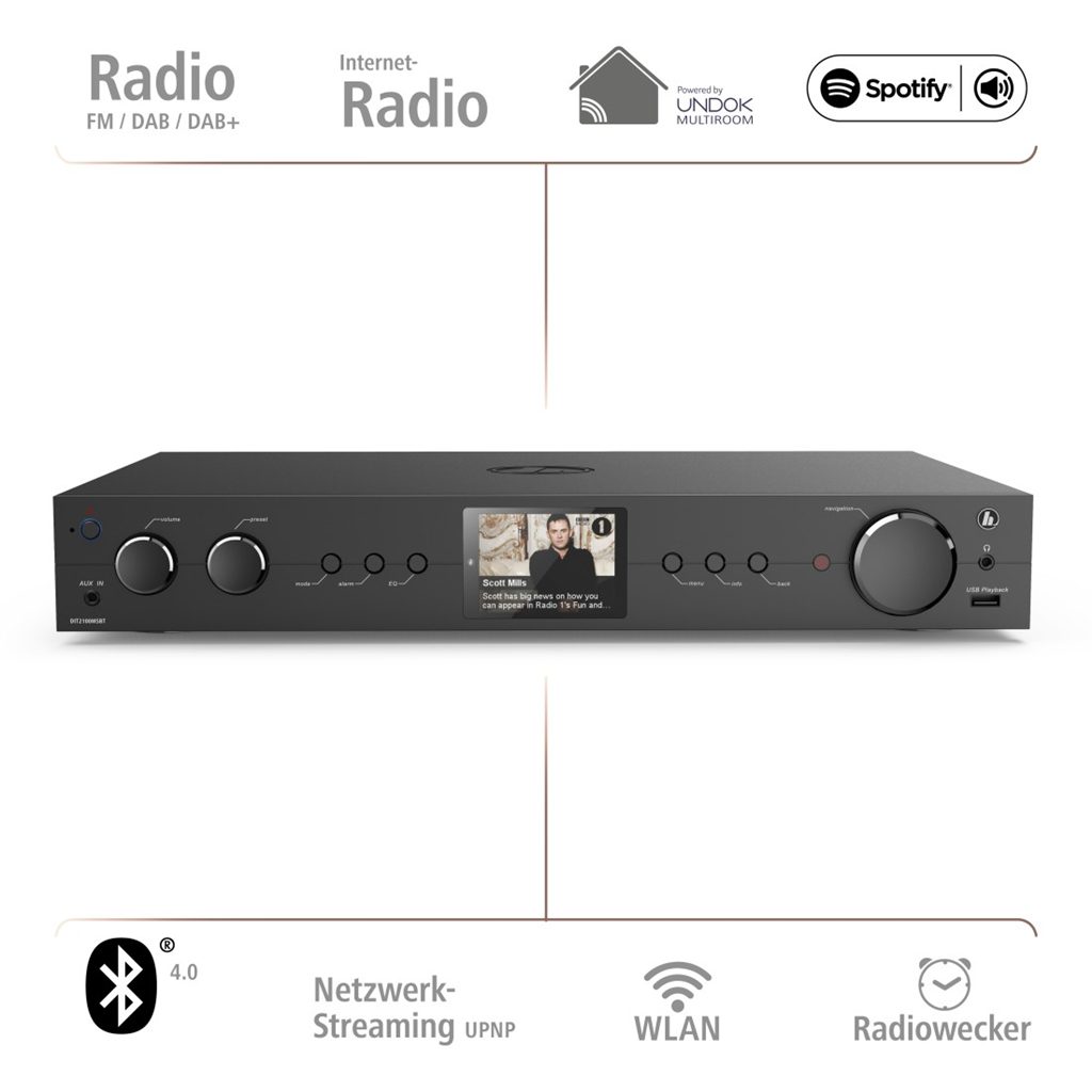 - váš domácí HiFi systém v nové dimenzi: digitální rozhlas DAB/DAB+, FM rádio, internetové rádio, Bluetooth a WiFi streaming- HiFi tuner pro příjem FM/ DAB/ DAB+ a internetových stanic