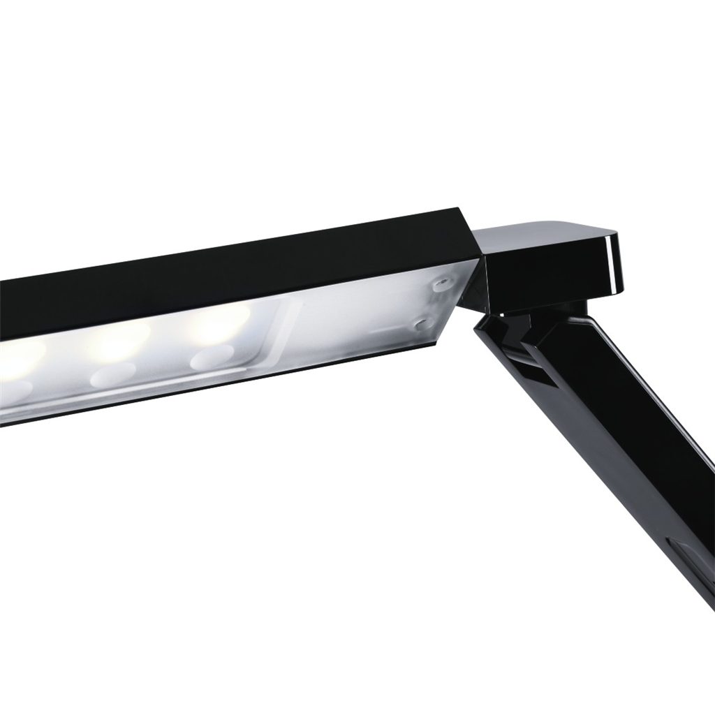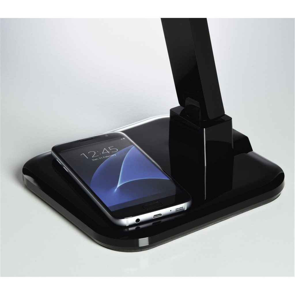 - Elegant desk lamp with functional top equipment and inductive charging function - Modern Qi charger in the base for charging Qi compatible devices without cables 4 types of illumination (different colour temperatures) at the touch of a button - the right light in every situation: - Reading mode: ideal combination of warm white and cold white light, pleasant light for reading or for everyday activities - Working mode: cold white, short-wave light for increased concentration - Silent mode: warm white, long-wave light allows particularly good relaxation - Sleep mode: warm white light is ideal for falling asleep or as backlight - If required, the integrated turn-off timer switches the lamp off after 30 of 60 minutes - 5 different brightness levels allow you to adapt the quantity of light to your own brightness requirements - Special joints for swivelling and bending the lamp always enable the optimal position and illumination - Excellent colour reproduction with RA > 90: very similar to daylight and therefore ideal for colour recognition and differentiation - Practically flicker-free light is easy on the eyes and protects from fatigue - A smartphone, tablet PC and other USB devices can easily be charged on the integrated USB charging port (max. charging current: 1.3 A) - Touch buttons for ergonomic and very easy use Note for Consumers: The lamp may only be used with the supplied electronic ballast. Please refer to the product information or the operating instructions of your terminal device or contact the manufacturer to know whether your smartphone supports the inductive charging technology. Technical Details: - Colour Temperature: 2700 - 7000 K - Dimm function: 5 Levels - Equipment: Qi Charger/Timer/USB Socket - Excution AC Adapter: Constant Current - Lamp Survival Factor at 6000h (min.): 0,9 - Life: 40000 h - Model: Desk Lamp - Number of Joints: 4 - Number of Switching Cycles until Premature Failure (min.): 20000 - Starting Time (max.): 0,008 s - Timer Switch-Off in: 30/60 min - Beam angle: 76 ° - Boom max. : 64 cm - Boom min.: 34 cm - Breite Sockel x Länge Sockel: 17x18 cm - Maximum Height: 71 cm - Maximum USB Charging Current: 1.5 A - Minimum Height: 46 cm - Weight: 1160 gr - Energy Efficiency Class: A (Scale from A++ to E, Optimum Value: A++) - Luminous flux: 285 Im - Max. Output current AC-Adapter: 2 A - Ambient temperature range: 25 °C - EAR Reg.No.: DE 38720470 - Electrical Efficiency Factor of the Bulb (min.): 0,43 - Frequency: 50 Hz/60 Hz - Illuminance (max.): 1100 lx - Lamp Lumen Maintenance Factor at 6000h: 0.8 - Max. Power with charging function: 21 VA - Max. Primary current AC-Adapter: 0.6 A - Nom. Output voltage AC-Adapter: 12 V - Operating Voltage (DC): 12 V - Peak intensity: 203 cd - Power Consumption: 11 VA - Start-Up Time Until 60% of Full Light Output Has Been Reached (max.): 1 s - Voltage AC-Adapter: 100-240 V - Colour Reproduction Index RA (min.): 90 - Light Colour: Daylight/Neutral White/Warm White - Usage: Interior Rooms - Power connector plug type: Euro Plug, Type C (CEE 7/16) Scope Of Delivery: - 1 "SL 65" LED desk lamp - 1 ballast - Operating instructions