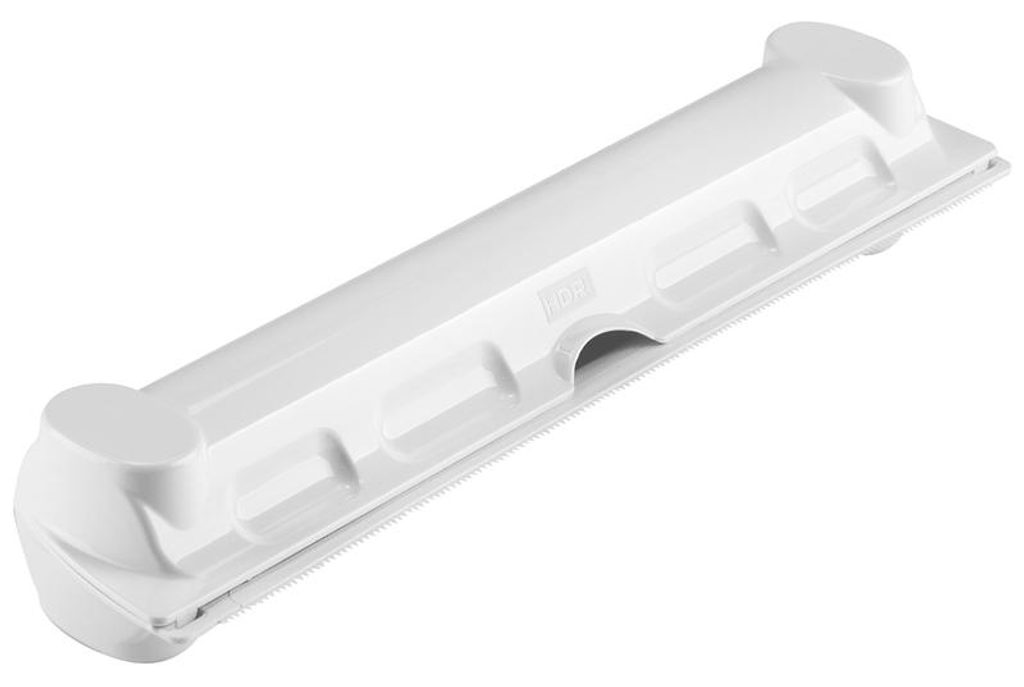 Praktický pomocník pro vytahování a trhání potravinařské fólie či alobalu. Držák se jednoduše používá, stačí zvednout horní kryt, vložit novou roli s fólii, trochu povytáhnout a kryt zase zavřít. Při používání stačí jednoduše zatáhnout za fólii nebo alobal, vytáhnout délku, kterou potřebujete a utrhnout. Ostrý okraj držáku zajistí rychlé utržení fólie. Rozměr 31,5 x 7,5, 5,5 cm. DRŽÁK NA FÓLIE, PLAST, 31,5X7,5X5,5CM