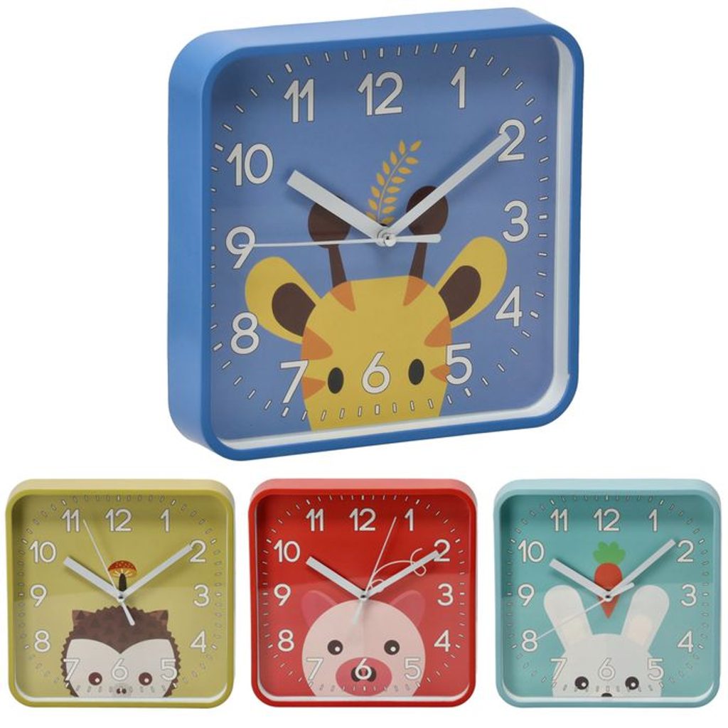 hodiny 20x20x3,5cm, ZVÍŘÁTKA, 4druhy, dětské, nástěnné