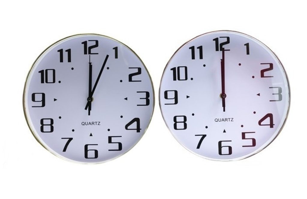 hodiny d29cm, kulaté, kov.rám., 2barvy