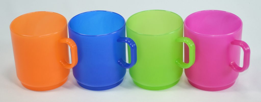 Plastový hrníček s ouškem o objemu 250ml. Použití max. teplota do 120°C.